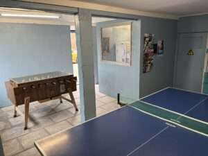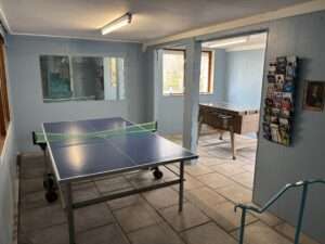 Op de begane grond een tennistafel & Tafelvoetbal spel, zeker bij minder weer intrek of om te kijken wie deze avond de afwas doet. Vaak de verliezer.