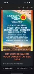 - halfuurtje rijden van Concert at Sea! 25 + 26 & 27 Juni 2026.